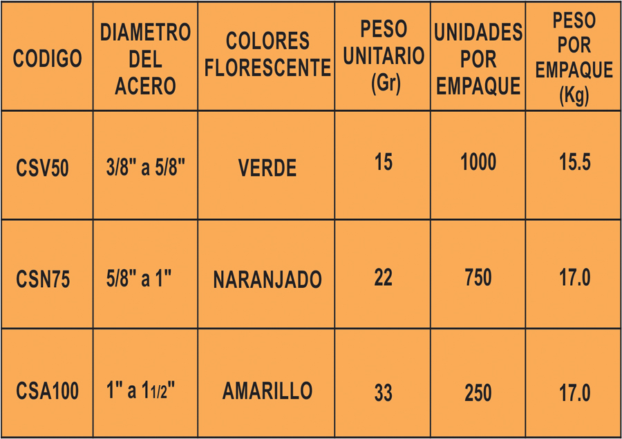 Producto diseñado para proteger la integridad física del personal en obra, evitando el riesgo de cortes, raspones o punzamientos causada por las varillas expuestas, su color fosforescente permite una perfecta visualización del área o perímetro en riesgo. Aplicaciones: Se coloca en el extremo de la varilla horizontal o vertical expuesta a peligro.
